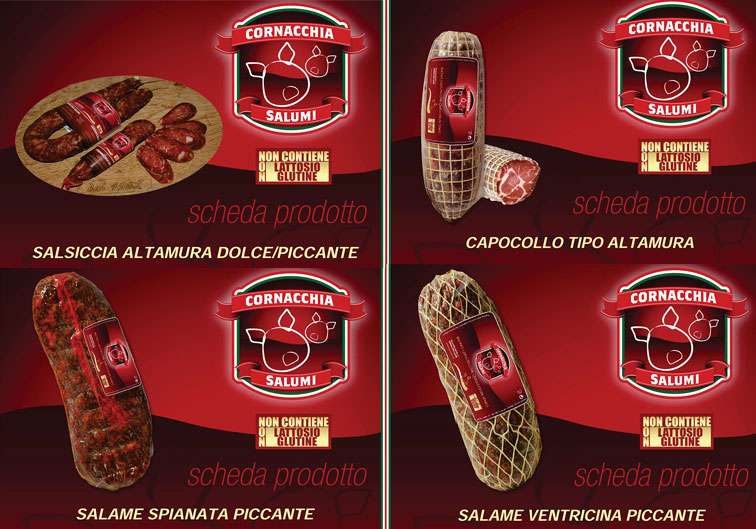 Vendita all'Ingrosso di Salumi senza LATTOSIO e senza GLUTINE. La bontà dei prodotti Cornacchia Salumi è evidente al primo assaggio perché sono il frutto di un attento processo produttivo che è attuato con professionalità e amore. Dall’accurata scelta delle carni alle fasi di trasformazione, dai tempi di stagionatura, tramandato con orgoglio da padre in figlio, al confezionamento, tutto avviene nel più assoluto rispetto della tradizione con una grande passione artigianale e un’assoluta garanzia di sicurezza. Ricordiamo inoltre, che tutti i nostri prodotti NON CONTENGONO NÉ GLUTINE NÉ LATTOSIO!!!